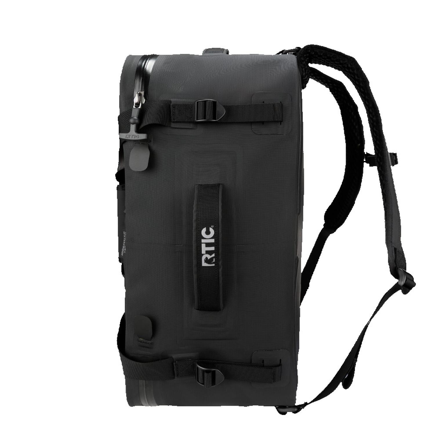 The ultimate waterproof travel bag, the RTIC Ultra-Dry Backpack combines heavy-duty adventure gear with everyday carry. With an IPX-6 waterproof rating*, the puncture and tear-resistant fabric, EZ zippers, and welded seams are watertight and weatherproof. Keep your gear organized with multiple storage pockets constructed with quick-drying mesh, including a padded laptop compartment. Easily pack with the open-book design and secure it with long zippers that create a waterproof seal when fully zipped into the dock. For maximum protection, apply pressure to the bag after zipping it closed and ensure no air escapes. Comfortably carry with the padded adjustable straps and open-mesh back panel. Ready for travel, this bag has a built-in luggage strap for rolling suitcases and fits under most plane seats. 14″ L x 9″ W x 22″ H